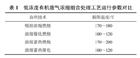 針對吸附濃縮技術(shù),吸附過程幾乎都在室溫下進(jìn)行,然而脫附條件卻因后處理設(shè)備的不同而有較大差異。郭昊發(fā)現(xiàn)循環(huán)風(fēng)量為300m3/h的170℃熱氮?dú)鈱钚蕴课降挠袡C(jī)溶劑脫附回收相對更經(jīng)濟(jì),當(dāng)廢氣在床層中停留時(shí)間在0.4s以上時(shí)脫附效率,顆粒活性炭在195℃氣流中的再生率為88%。沸石分子篩脫附溫度一般較高,脫附溫度區(qū)間較寬,盧晗鋒等采用高溫?zé)崴畬aY分子篩進(jìn)行改性后的Y分子篩對甲苯的脫附溫度可降低140℃左右。活性炭纖維的脫附效率隨著升溫速率的加快而提高,且其重復(fù)性較好,對較高濃度甲苯的吸附容量為434.8mg/g,但解析脫附過程可產(chǎn)生二次污染。針對活性炭吸附濃縮的不同組合工藝,其藝脫附氣流溫度如表1所示。